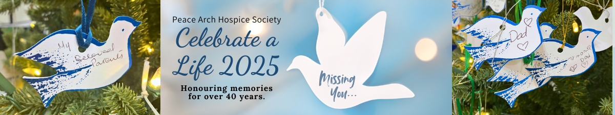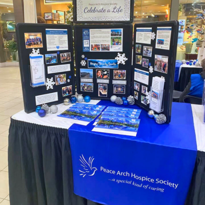Let our Hospice Society Volunteers help you honour a special person! Stop by our table at Semiahmoo Shopping Centre (outside of GS & Company) and write your loved one's name on a paper dove, free of charge, and hang it on our Celebrate a Life Tree.